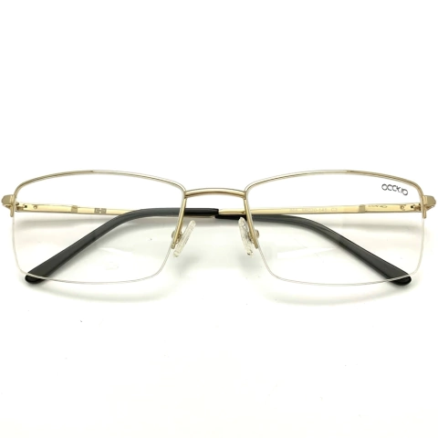 Armação para grau com frente e hastes em metal monel na cor dourado e ponteiras em acetato na cor preto